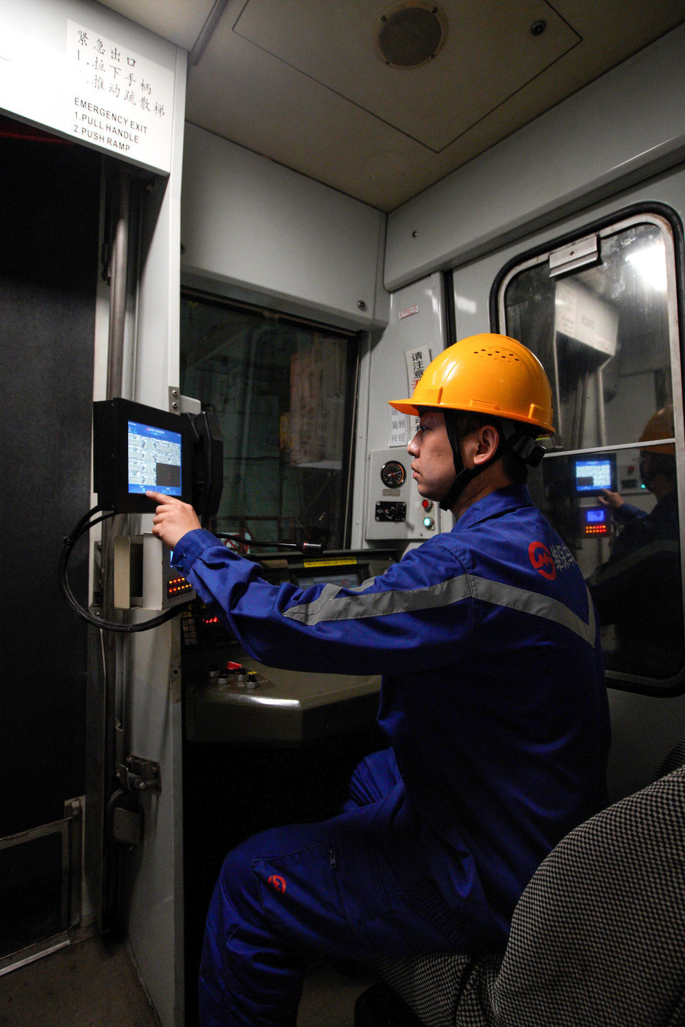 11月4日凌晨时分,工人在上海轨道交通梅陇基地检查车辆。新华社发(杨帆 摄)