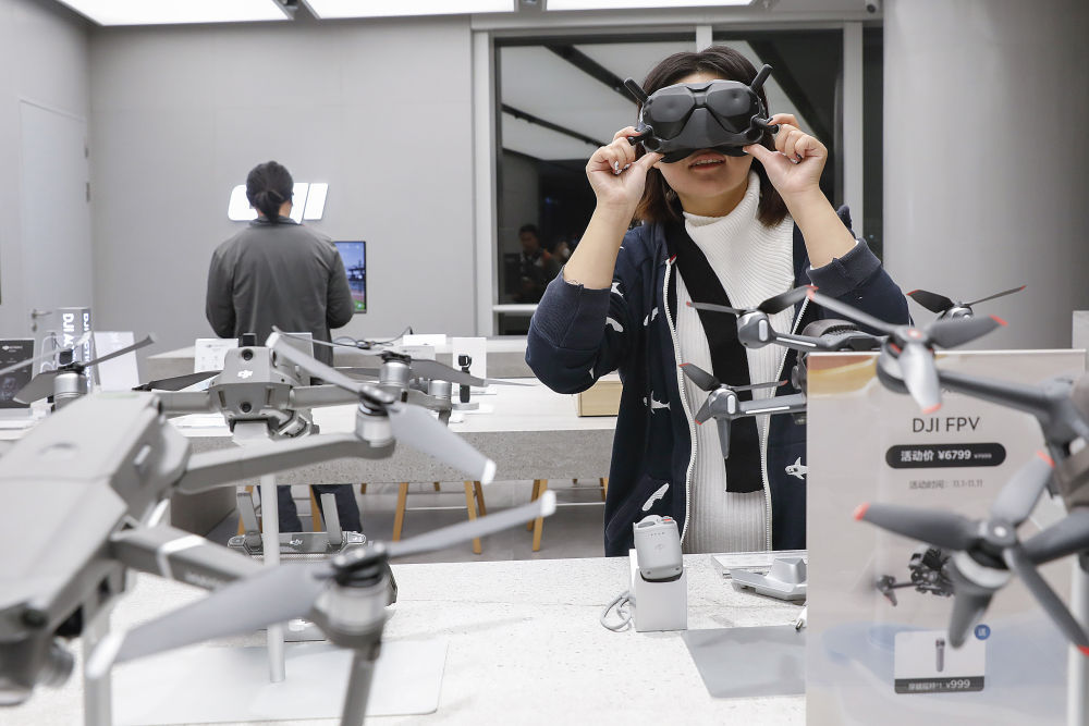 11月3日,顾客在上海“DJI|哈苏融合店”内体验飞行眼镜。新华社记者 张玉薇 摄