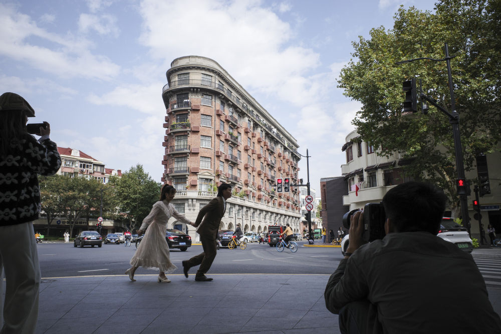 11月3日,人们在上海武康大楼前拍照。新华社记者 张豪夫 摄
