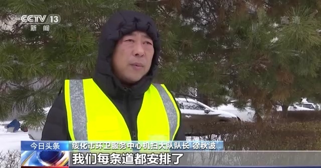 绥化市环卫服务中心机扫大队队长 徐秋波:从8日5点开始,一直到15点,我们每条道都安排了自己负责区域的扫雪车不间断机扫,有的路面已经达到了3次到4次,因为一直在扫,我们也没有停。