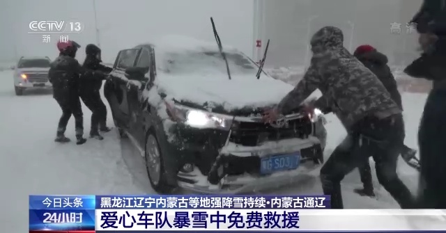 因受降雪影响,内蒙古通辽发生多起交通险情发生。来自开鲁县的一支爱心救援车队行驶在暴风雪中,全力救援受困车辆和人员。