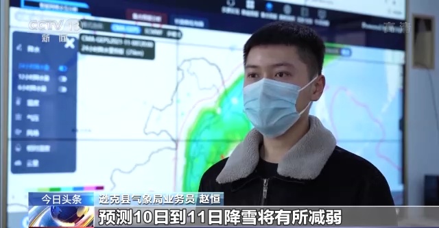逊克县气象局业务员 赵恒:预测10日到11日降雪将有所减弱,转为阵雪天气,可能伴有5到6级偏北风,会有风吹雪现象,部分地区道路会造成雪阻。