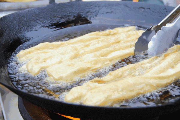 人们在炸油条的时候