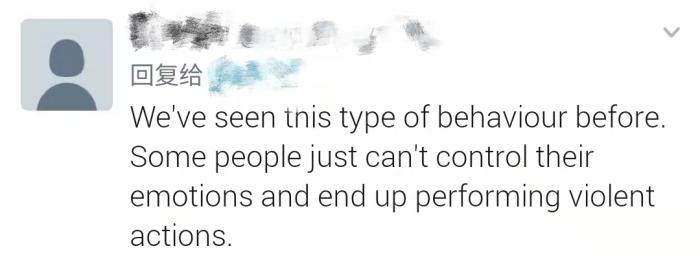 “我们以前就见过这种行为。有些人就是无法控制自己的情绪,最终做出暴力行为。”