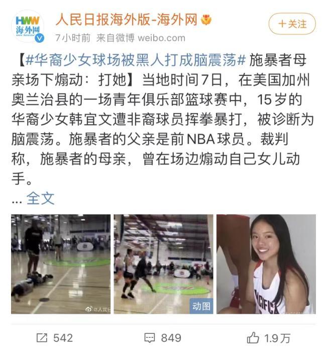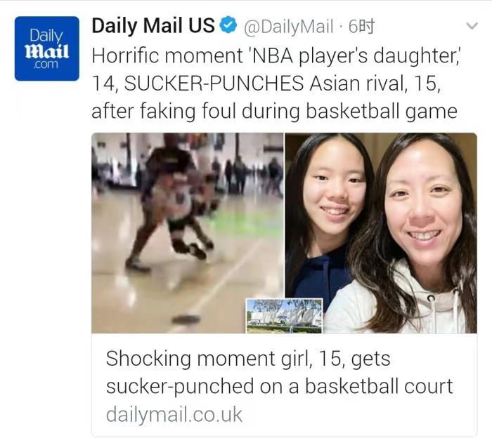 外媒还透露了更多细节:施暴者现年14岁,是一名前NBA球星的女儿,不过她的名字和具体身份并没有被报道出来。在袭击发生之前,这个黑人女孩刚刚投失了一个三分球。