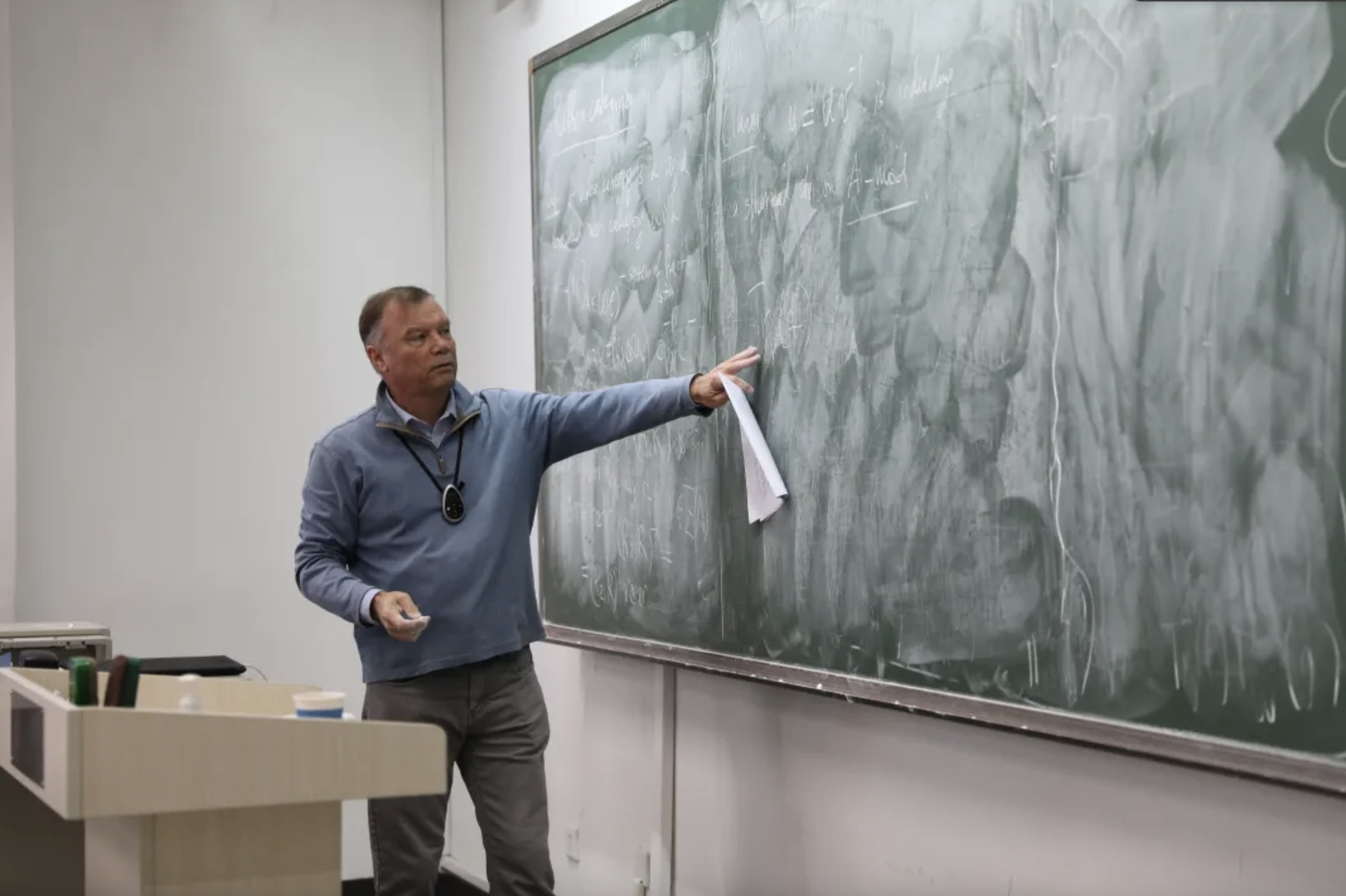 记者了解到,该图为尼古拉·莱舍提金正在为清华学子上《纽结不变量与3维流形》这门课程。11月初,他刚刚进入清华开始线下授课。