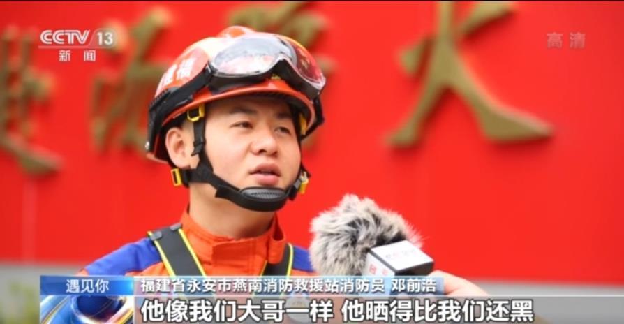 福建省永安市燕南消防救援站消防员 邓前浩:我来队里三年多了,我来的时候晖哥他就在,我们一起出去训练,他像我们大哥一样,他晒得比我们还黑。