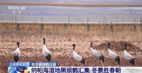 纳帕海湿地黑颈鹤汇集 冬景胜春朝