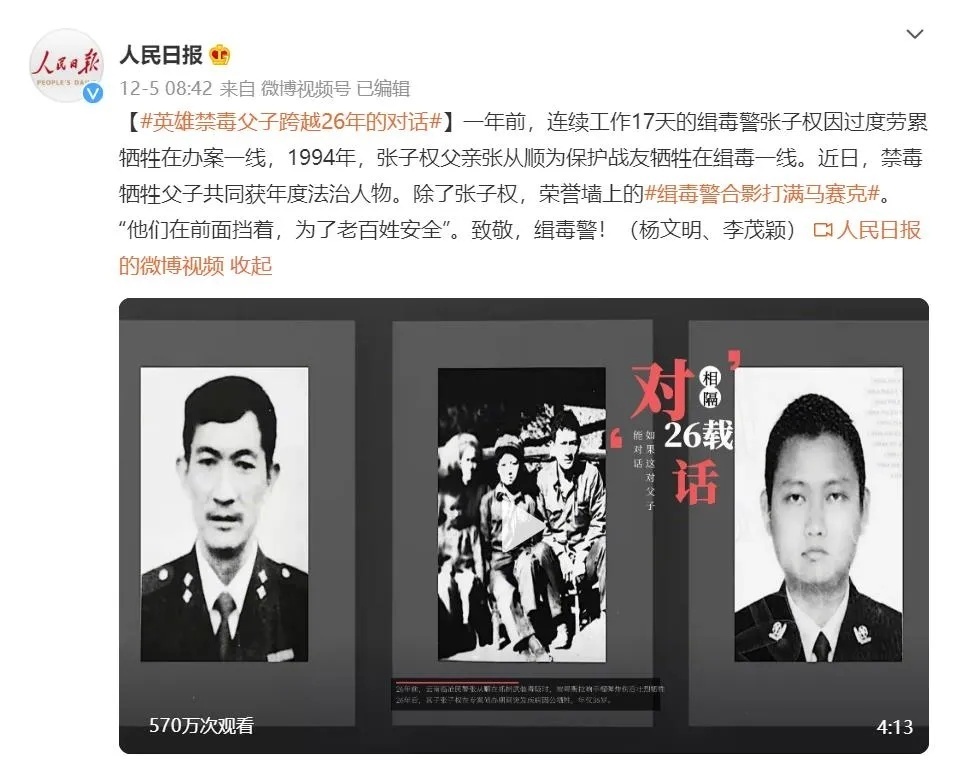 “之所以能生活在阳光下,是因为有人替我们挡住了黑暗!致敬中国缉毒警察!”“吸毒人员花的每一分钱都是打在缉毒警察身上的子弹”……无数网友写下了自己的心声。