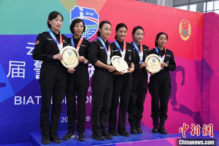 图为2020年8月31日,程靖与战友在云南省公安系统首届警察两项比武活动中获女子团体冠军(左三)。