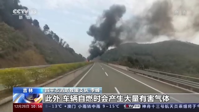 四平市消防救援支队 李峰:驾驶人可利用车载灭火器对准火焰根部进行喷射灭火,如果火势无法有效控制,应立即撤离到安全地带。此外,车辆自燃时会产生大量有害气体,车上人员应逃向上风口方向,避免吸入有害气体。