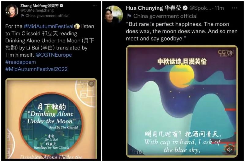 总台欧洲总站围绕诗词持续发力,邀CGTN资深外籍主播、海外华人等嘉宾双语朗诵《水调歌头》《静夜思》等经典诗词,被中国外交部发言人华春莹、中国驻贝尔法斯特总领事张美芳等转发,总流量逾123万。