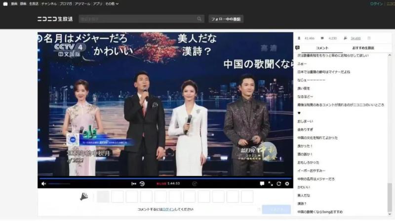 实时同传,弹幕陪看!国际视频通讯社首次联络日本主流视频网站Niconico同步播出总台秋晚节目,主持人串词配上日语同传,实时在线观看人数达4.2万,弹幕评论4700余条,节目好评率达95.5%。