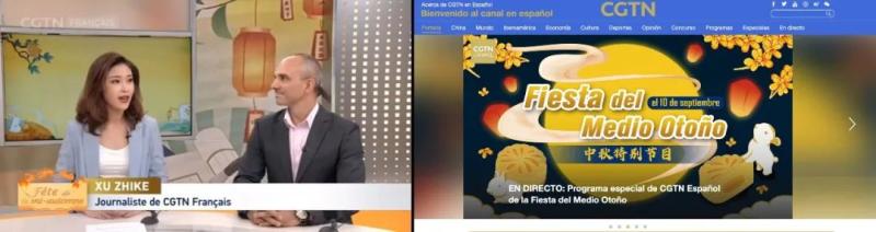 秋晚播出当天,总台CGTN推出法语和西班牙语中秋特别直播节目,邀请探班总台秋晚的主持人做客直播间,向海外观众介绍中秋习俗及寓意,探秘总台秋晚的幕后点滴,展示江苏非物质文化遗产及江南文化魅力。