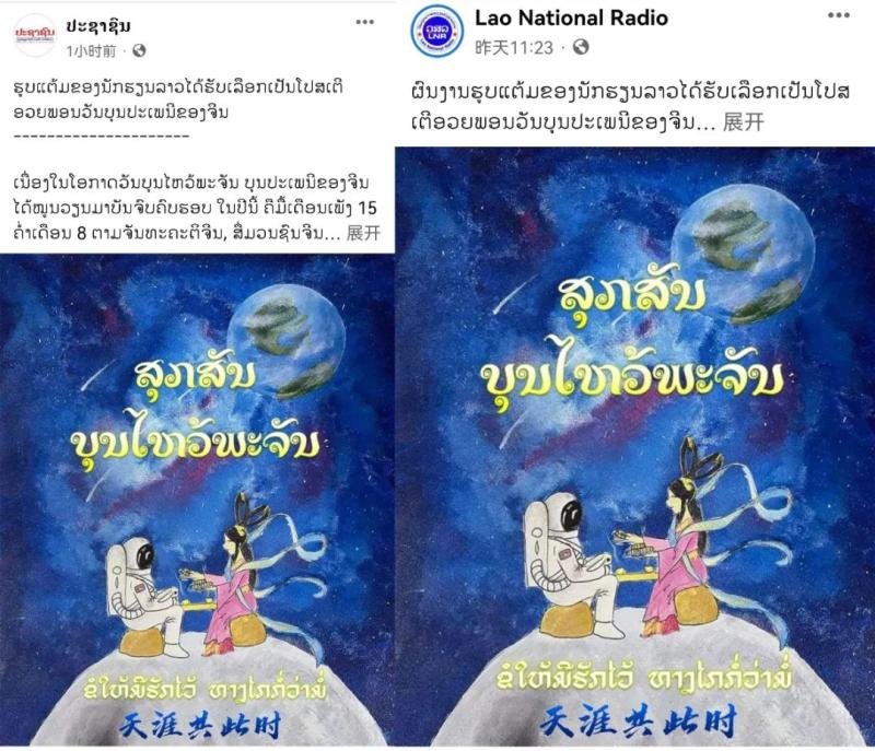 海报《天涯共此时》被老挝《人民报》及老挝国家广播电台社交媒体账号转载。