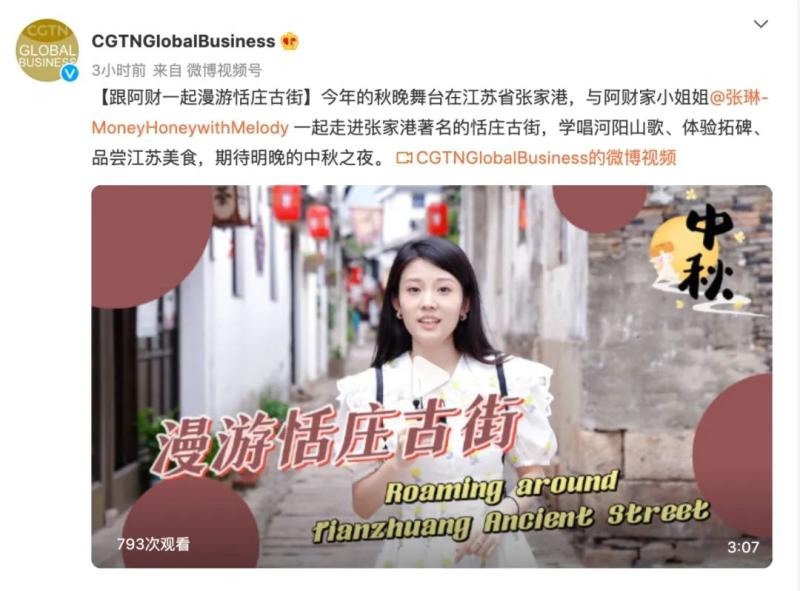 总台CGTN派出多个语种的新媒体工作室前往秋晚录制现场,除了“剧透”总台秋晚的一手资讯之外,还立足苏州和张家港的非遗文化、建筑特色开展好感传播,将全球华人看秋晚、过中秋的氛围感拉满。