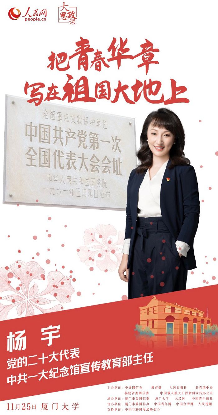 此番走进厦大,杨宇将带领同学们“云”探访初心之地,勉励同学“用信仰之光照亮青春之路”。