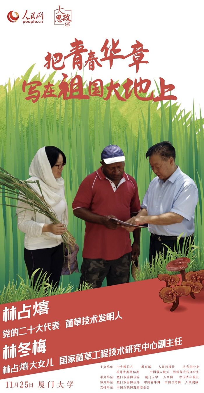 此番走进厦大,年近八旬、党龄56年的老党员林占熺将向同学们讲述“菌草变幸福草”的故事。