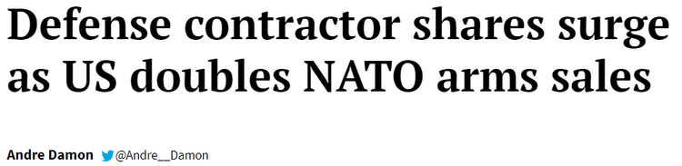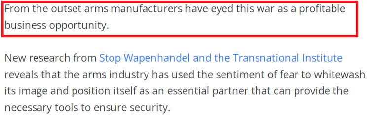 “欧盟观察家”网站发文指出,美西方军工企业从一开始就利用恐惧情绪,将自己定位为可以提供安全的重要合作伙伴,把俄乌冲突视为有利可图的商机。