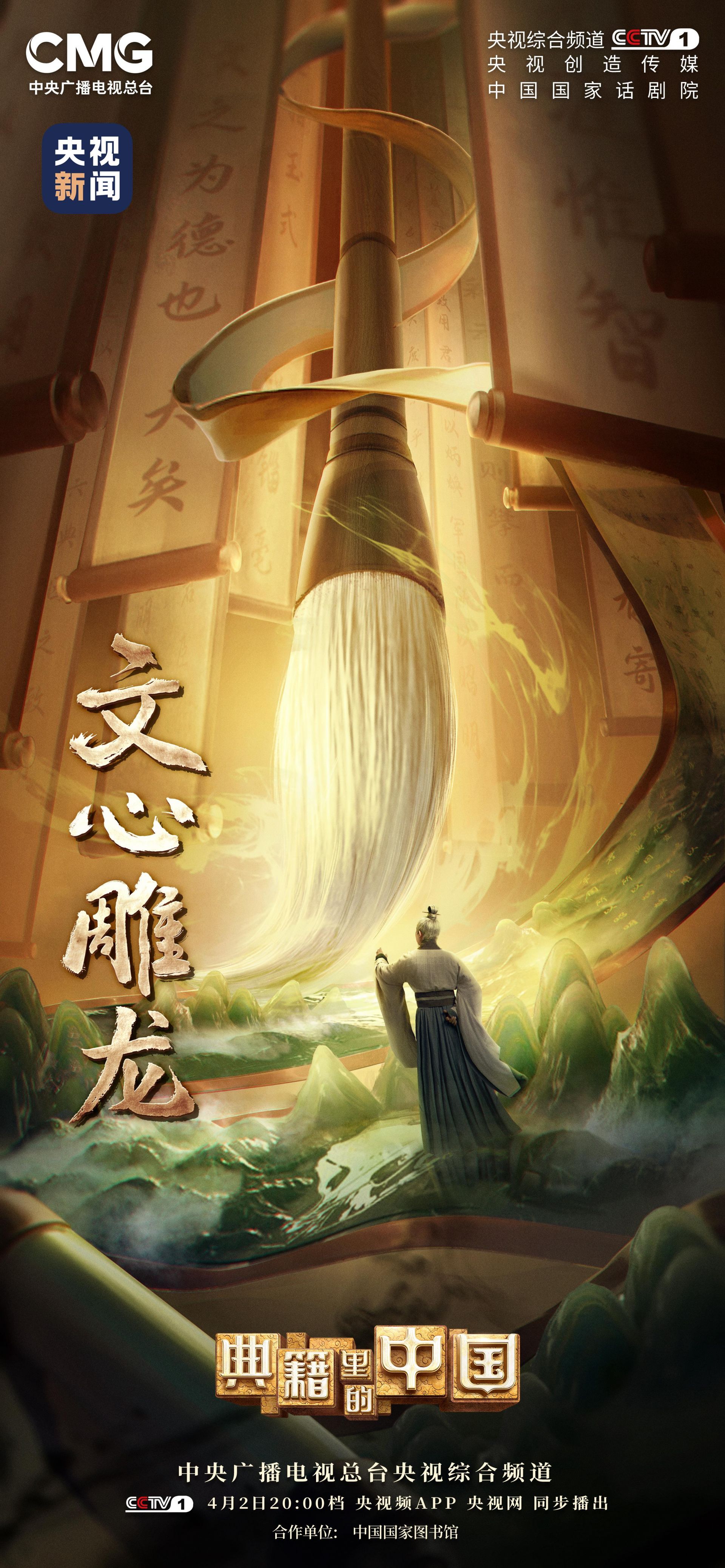 CCTV-1今晚八点档,敬请期待由中央广播电视总台出品,央视综合频道、央视创造传媒和中国国家话剧院联合打造,中国国家图书馆参与的大型文化节目《典籍里的中国》第二季第十期《文心雕龙》,让我们一起秉承先贤之志,雕千年文脉,传中华精神!
