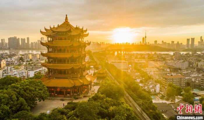 湖北武汉,夕阳映照下的黄鹤楼。赵广亮 摄