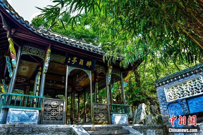 树木婆娑,亭台错落,醉翁亭依然风景如画。流连于美景之中,那句脍炙人口的“醉翁之意不在酒,在乎山水之间也”,更有一番意趣。