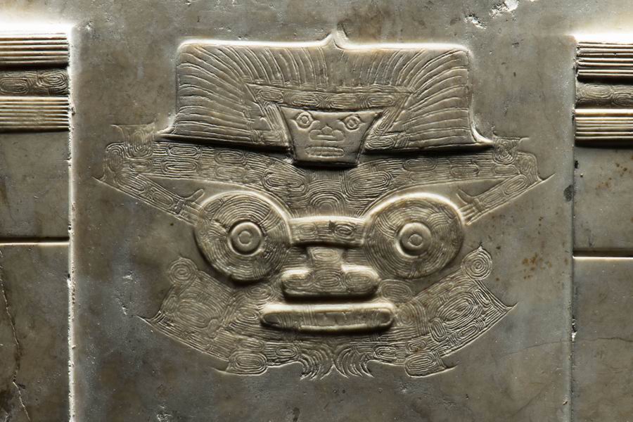 琮、钺和玉权杖上琢刻的神徽跟鸟纹其实是一个组合形态。仔细观察可发现鸟纹的身体跟神徽的眼睛是一模一样的,方向明认为这其中有这么几层含义:画一只鸟就表明天空,表示神像所处的空间在天空,此外也表示它需要神鸟来辅助它旋转上升。