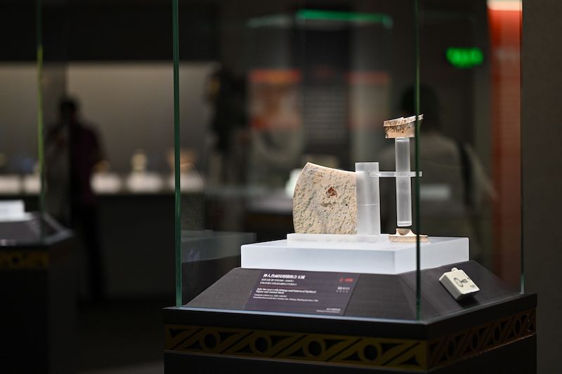 展览现场 良渚文化 玉蝉 2021年浙江余姚北村遗址106号墓出土 浙江省文物考古研究所藏