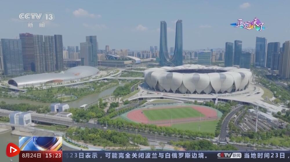 总台央视记者 任梅梅:杭州亚运会共设置了8个竞赛场馆群和7个一馆多项场馆,来提高场馆利用效率,使运动员参赛更加便捷。此外,还广泛使用新科技、新工艺、新材料,将绿色低碳理念融入到竞赛场馆的设计和运营中,务求打造首届碳中和亚运会及亚残运会。目前,亚运村和亚运分村已具备入住条件,赛事场馆的各项准备工作也正在全面、有序地推进当中。