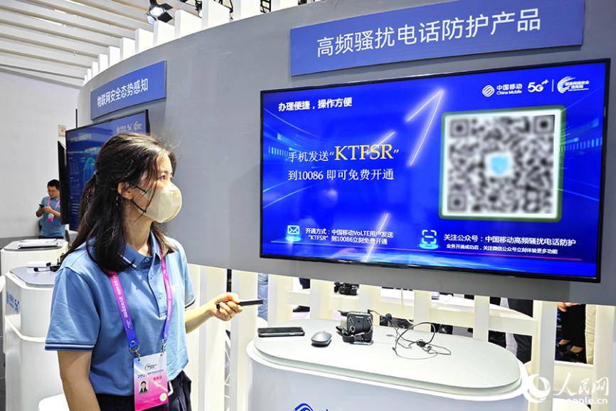 在中国移动的展位,工作人员演示了个人通话高频骚扰电话防护服务。