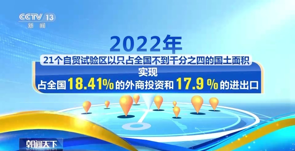 数据显示,2022年,21个自贸试验区以只占全国不到千分之四的国土面积,实现了占全国18.41%的外商投资和17.9%的进出口。今年上半年,21家自贸试验区高技术产业实际使用外资同比增长13.3%。