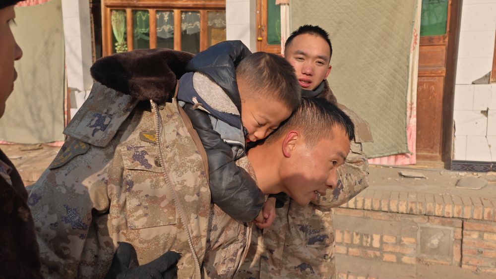 ↑ 12月19日,西部战区第76集团军某旅官兵在甘肃省临夏回族自治州积石山县大河家镇陈家小学展开救援。新华社发(冯彦荣摄)
