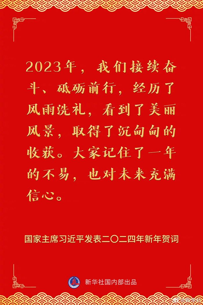 国家主席习近平发表二〇二四年新年贺词,一起来看金句。