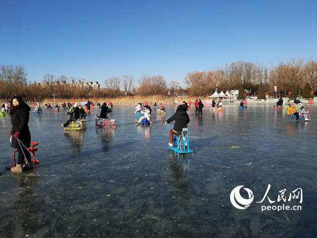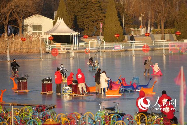 游客们在北京市朝阳公园的冰场里滑冰。人民网记者 王天乐摄