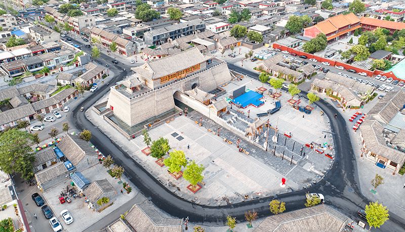 2022年9月8日,航拍河北正定古城阳和楼与正定历史文化街。