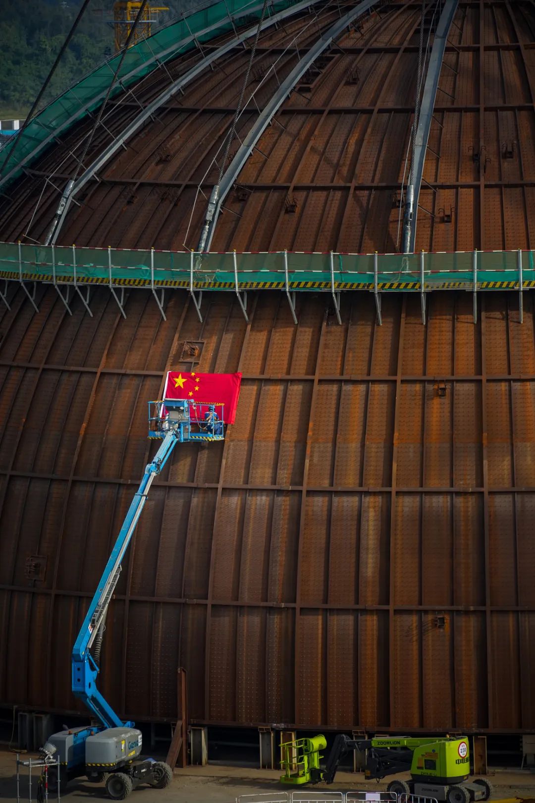 海南昌江,“华龙一号”4号机组穹顶吊装。