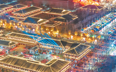 春节假期,河南焦作市山阳区怀川民俗文化休闲街区灯火璀璨,庆祝新春佳节。