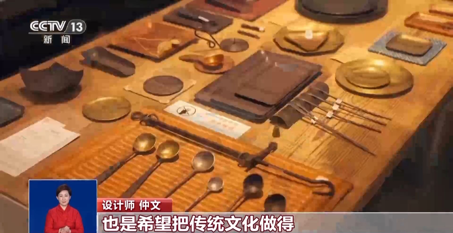 设计师 仲文:我们坚持传统的底蕴,然后不断地进行一个转化,然后创造出一批适合于我们现在各个年龄层用的吃的玩的一些作品。是希望把传统文化做得更国潮,更时尚,更酷,让更多的年轻人可以喜欢去消费,然后跟我们生活有更多的联系。
