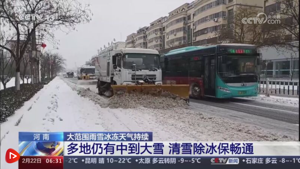 在周口和南阳,当地交警部门联合多部门对部分高速的易积雪结冰路段进行重点巡查值守,并采取警车压速带道的方式保障车辆安全通行。据河南省气象台预计,2月22日河南西部、南部部分县市仍有中到大雪,市民出行应注意安全。