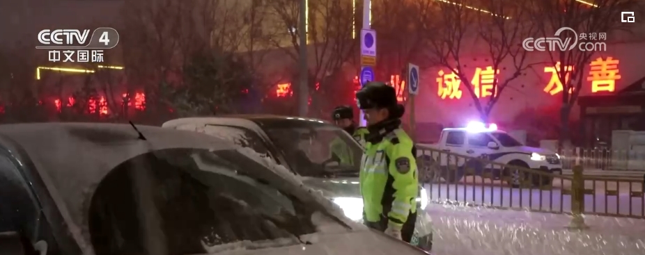 在陕西咸阳,交警2月20日起全员上路执勤,加强对桥梁、坡道、涵洞等重点路段的隐患排查,并协调市政部门开展除冰除雪工作。