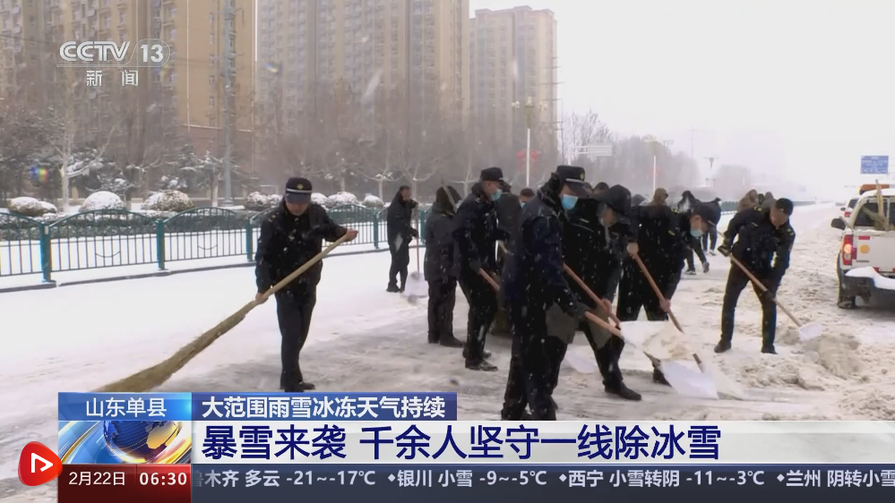 在山东单县,从2月20日开始当地出现持续降雪。针对降雪给交通带来不利影响,当地环卫部门积极应对。