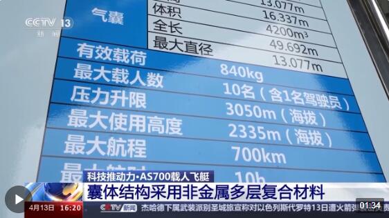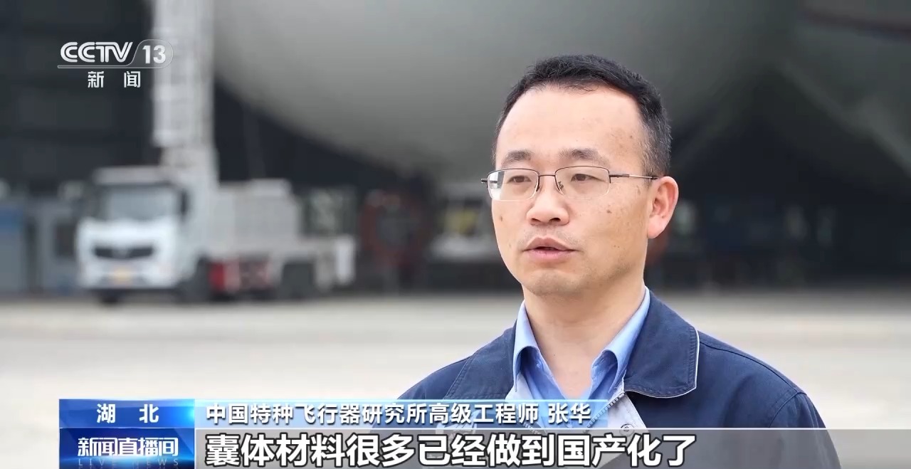 中国特种飞行器研究所高级工程师 张华:最近十年来,囊体材料很多已经做到国产化了,囊体材料是一层很厚的织物,即使是破我们拳头这么大一个洞,由于漏气量也是缓慢漏下去,也能保证飞艇安全地飞回来。