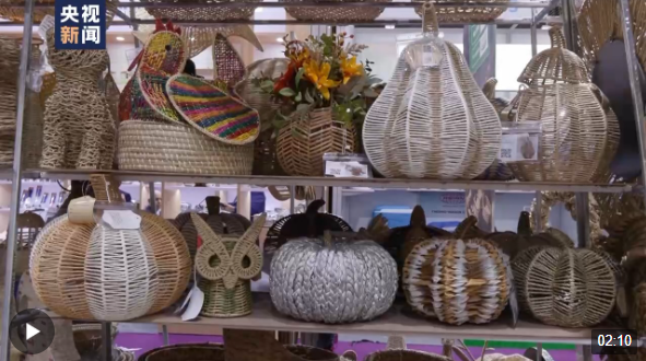 在这次广交会二期的进口展区中,不仅能看到很多厨具、瓷器等家居用品,一只手工编织的长颈鹿和一棵编织的椰子树引起记者注意。它们出自一家专门制作手工艺品的越南企业。