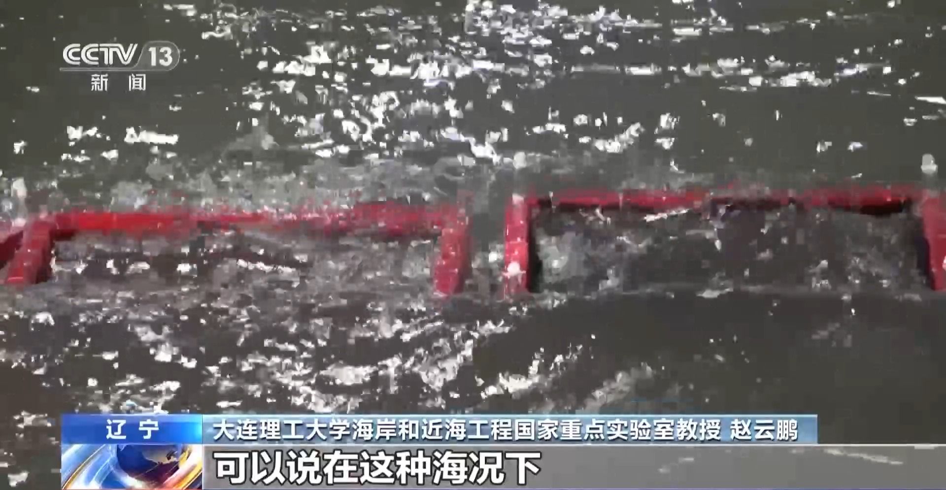 大连理工大学海岸和近海工程国家重点实验室教授 赵云鹏:我们将实验室模拟的波浪增加到10米量级,可以看到在这种大浪作用下,网箱运动更加剧烈,可以说在这种海况下,网箱非常危险。利用计算机模拟仿真,我们就可以设计出抗风浪能力更强的养殖网箱。