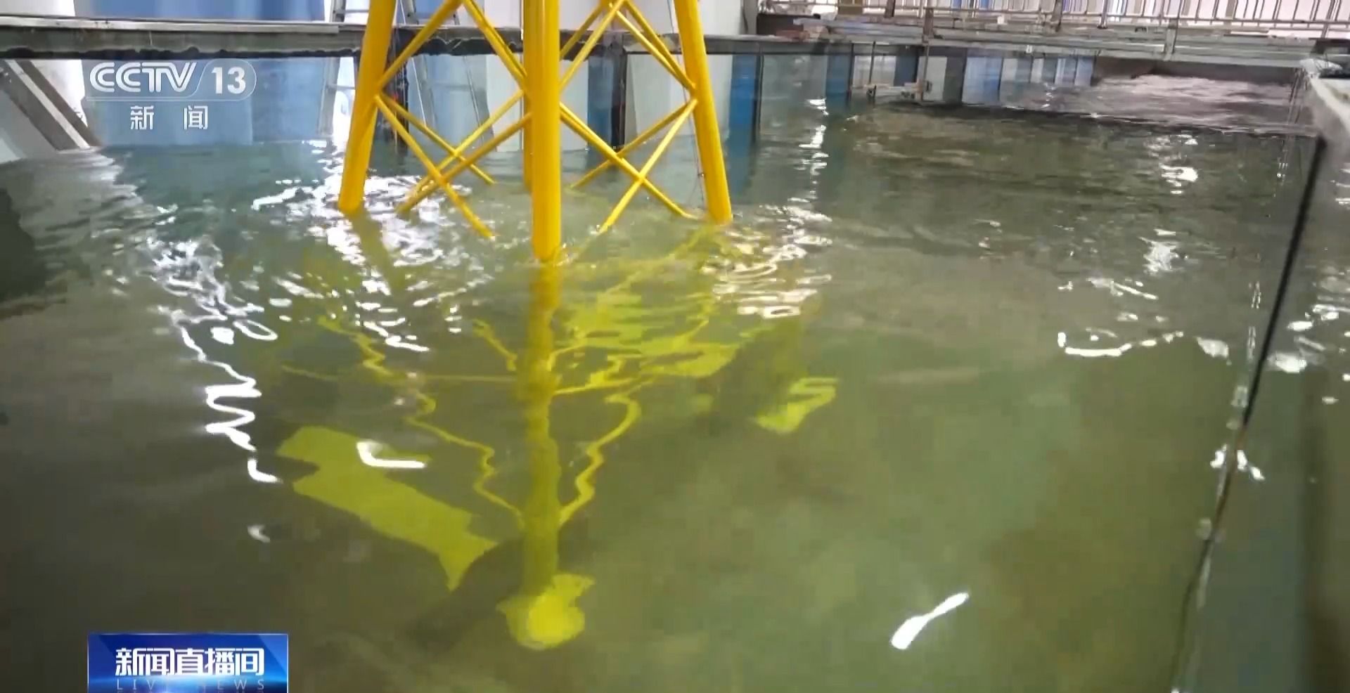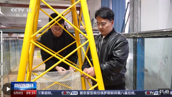 在中国海洋大学海洋水下设备试验与检测技术国家工程实验室,科研人员正在对新研发的风电设施网箱进行性能测试。