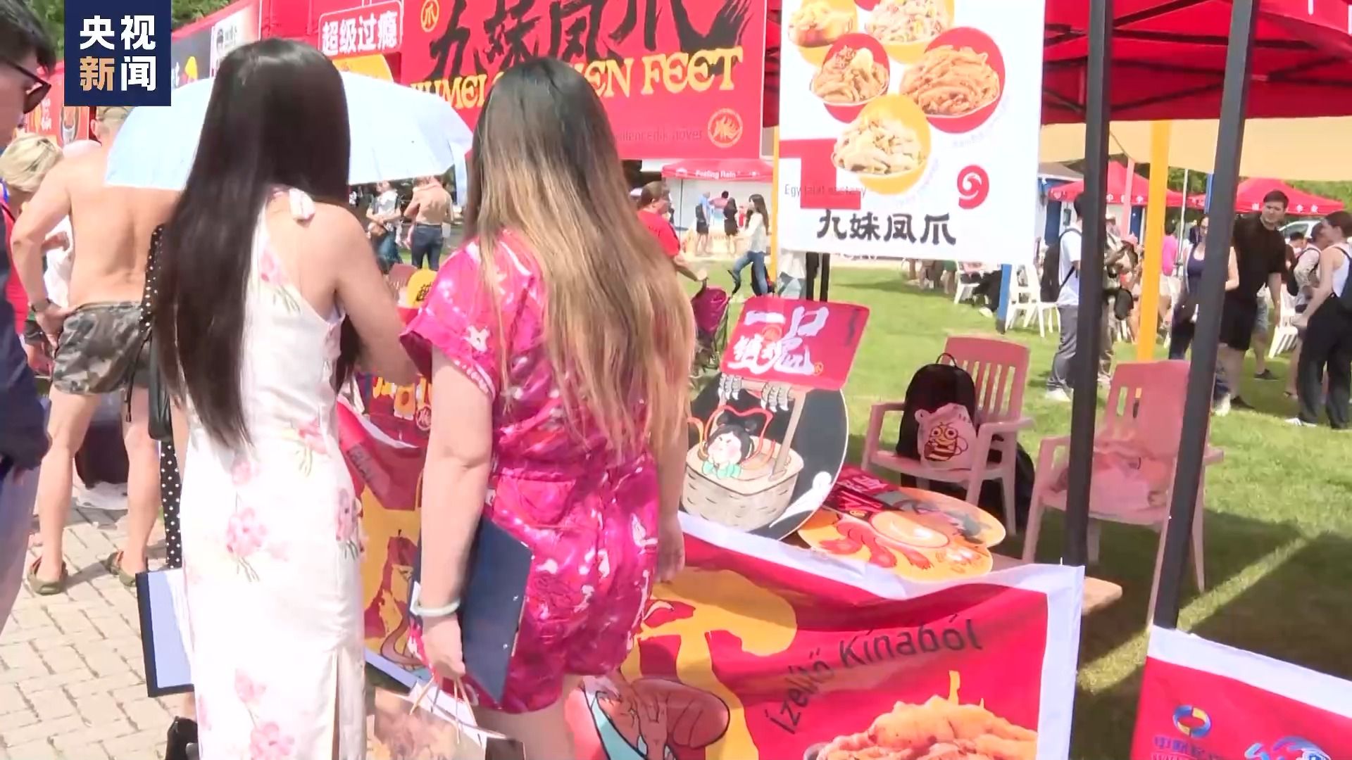 除了赛龙舟,来自四川乐山的餐饮代表团携特色美食来到现场布展,匈牙利罗兰大学孔子学院设置了书法及踢毽子等文化体验项目供游客参与。