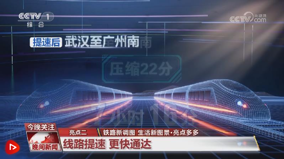 调图后,京广高铁全线实现按时速350公里高标运营,运输能力总体提升4.2%。提速后,北京西至广州南的最快旅行时间为7小时16分,压缩22分;武汉至广州南最快3小时17分,压缩23分。