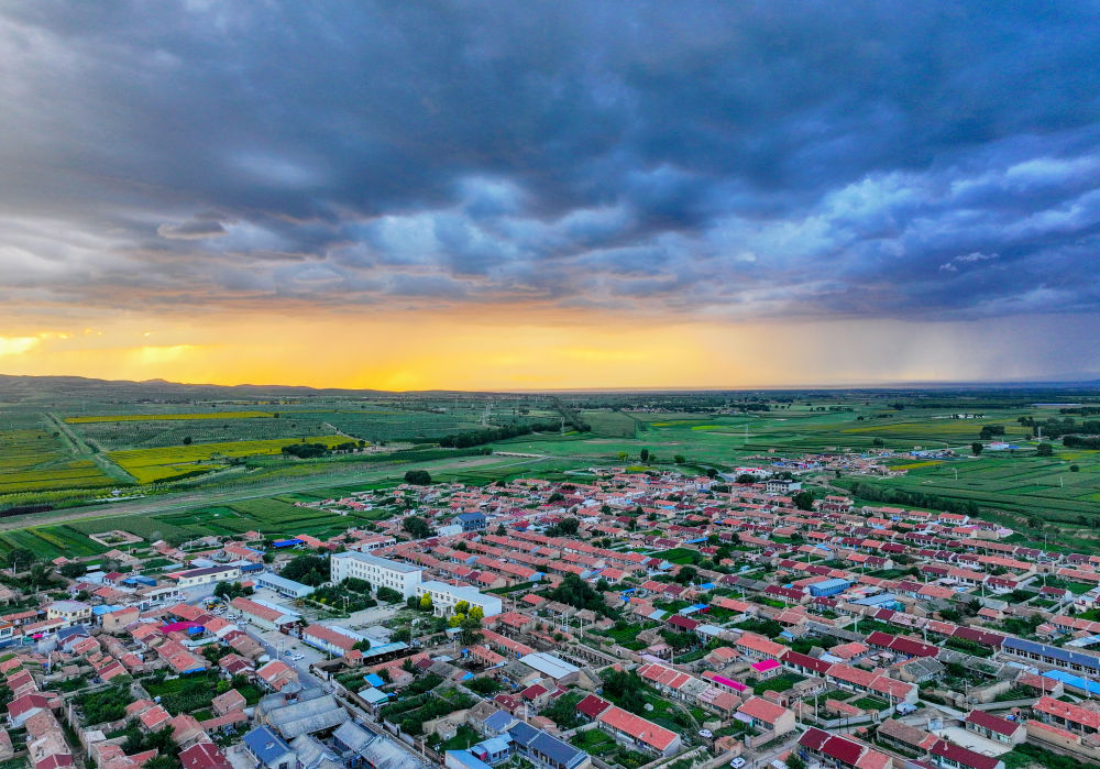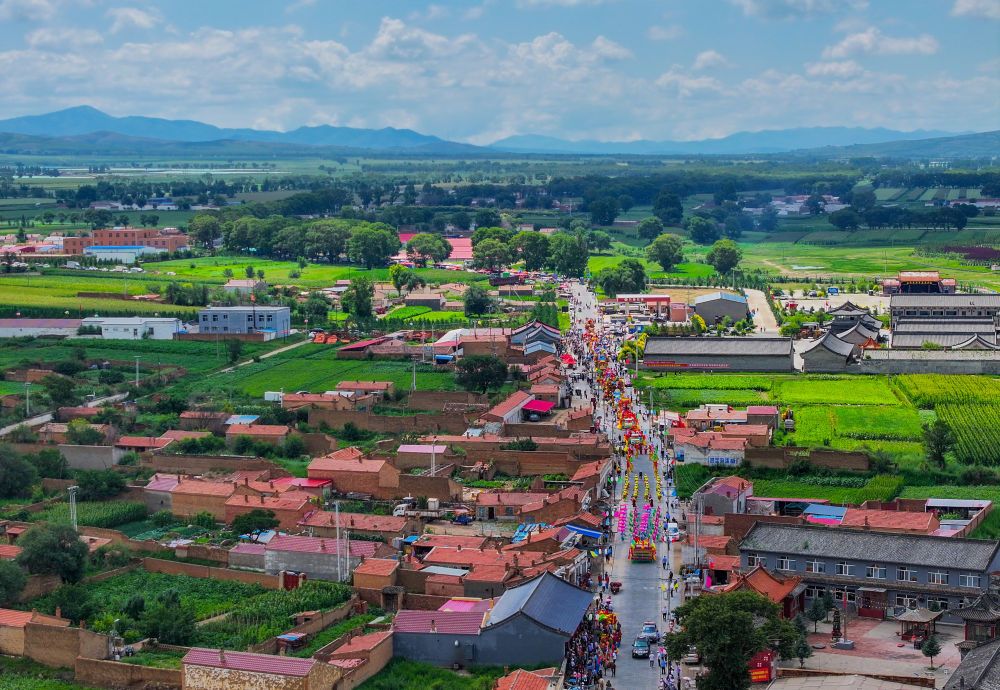7月25日,脑阁游行队伍行进在隆盛庄街道上(无人机照片)。