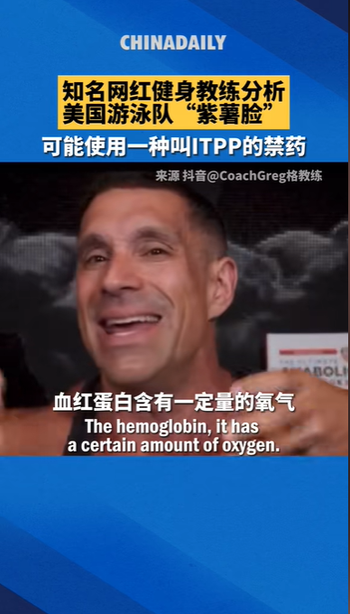 知名网红健身教练分析美国游泳队“紫薯脸” 可能使用一种叫TPP的禁药