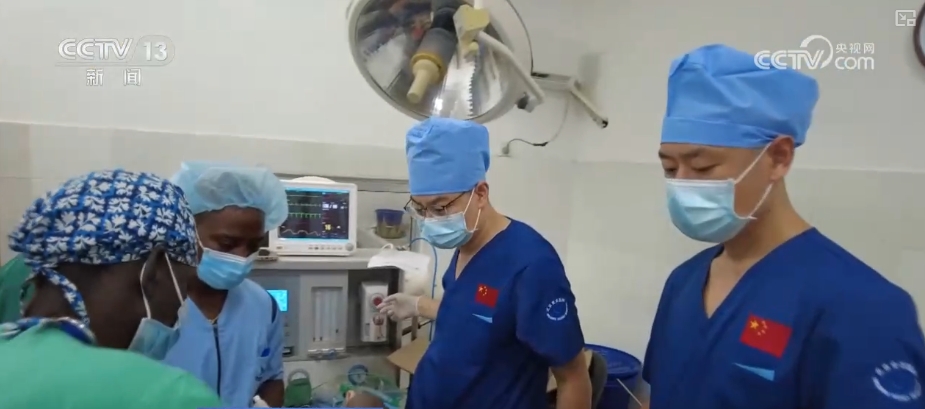 第三十批援几内亚中国医疗队队员陶振洲介绍,当时情况比较紧急,他第一反应就是要抢救患者生命,台下的护士以及其他的大夫用手机、手电筒灯光进行照亮,把手电筒放在无影灯上,提供光亮的照射,麻醉人员手捏着皮球代替麻醉呼吸机的工作状态。他们顺利完成了手术,患者术后康复也比较顺利。